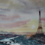 Paris Skyline watercolour 42cm x 59cm FOR SALE £150